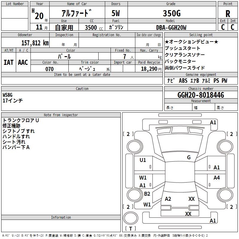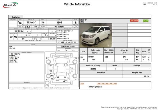 | Engine CC: | 3500 | Chasis Number: | GGH20-8018446 |